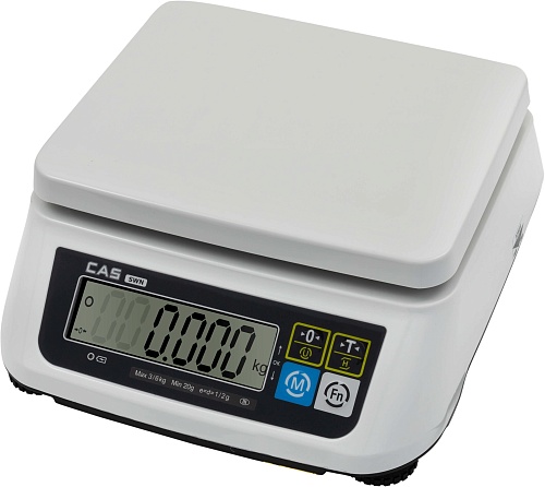 Настольные весы CAS SWN-03 обладают средним классом точности, возможностью вычитания массы тары, счетным режимом и аккумулятором.