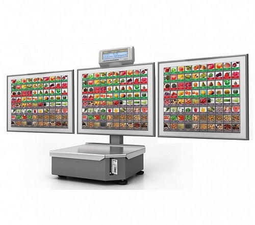 Фасовочные весы ШТРИХ-ПРИНТ С с возможностью печати этикеток, VFD дисплеем и прорезиненной клавиатурой. Возможно установка в зале для использования покупателем в качестве весов самообслуживания